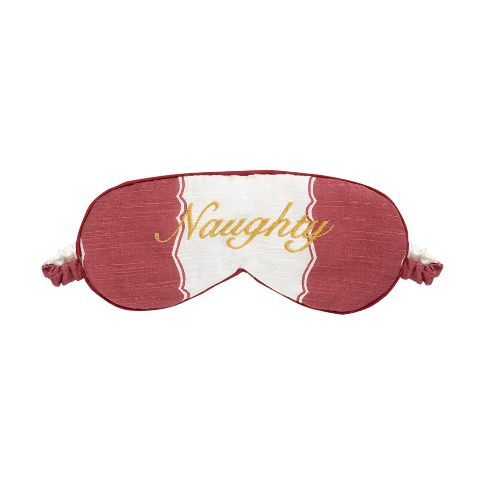 Mekana blagdanska maska za spavanje s dvostranim natpisima “Naughty” i “Nice” - savršena za opuštanje i biranje raspoloženja prije sna.