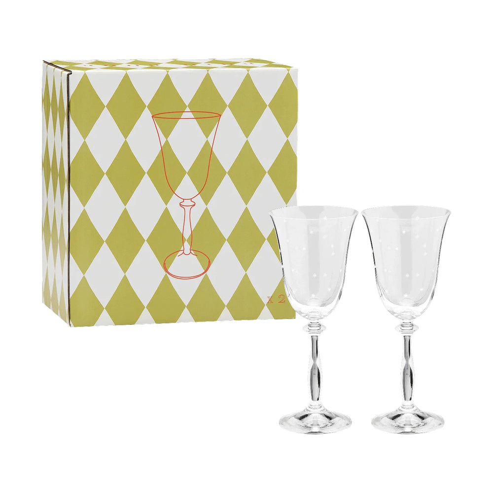 Starry Eve čaše za vino u setu od 2 komada ukrašene su suptilnim motivom zvijezde koji prostoru daje profinjen blagdanski naglasak. Prikladne su za uživanje u omiljenom piću ili kao elegantan dodatak pažljivo postavljenom stolu, a lako se kombiniraju s ostalim artiklima iz kolekcije.