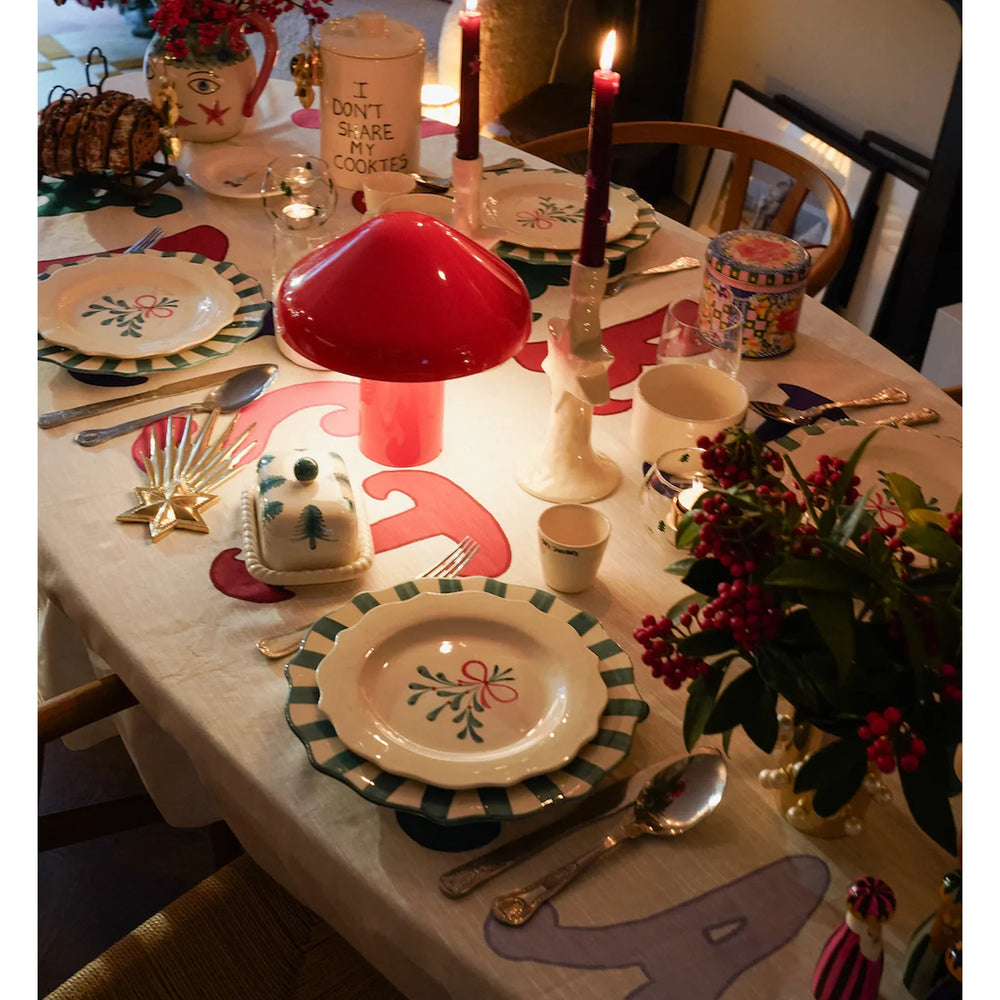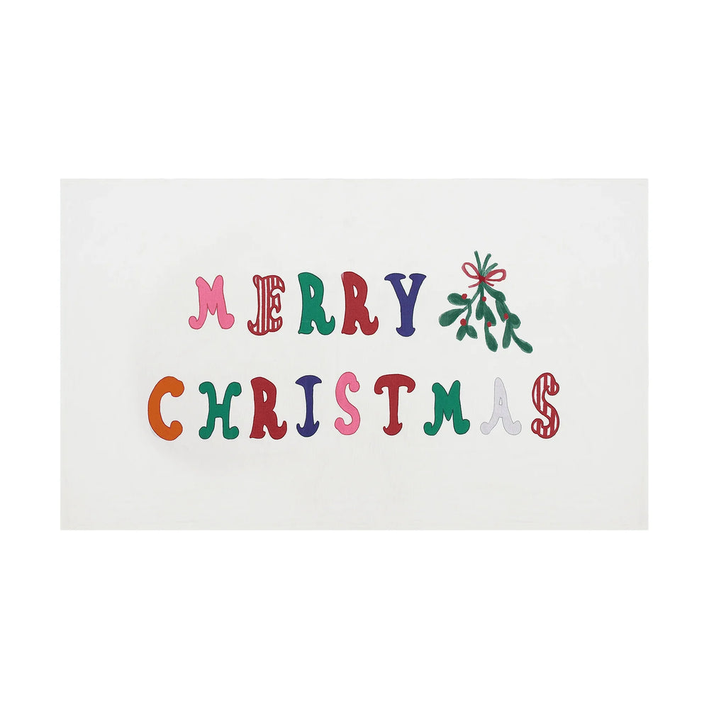 Merry Christmas Tablecloth unosi blagdansku toplinu i veselje na svaki stol. Razigrani božićni motiv stvara ugodnu, svečanu atmosferu, idealnu za sve od raskošnih božićnih večera do opuštenih blagdanskih bruncheva.