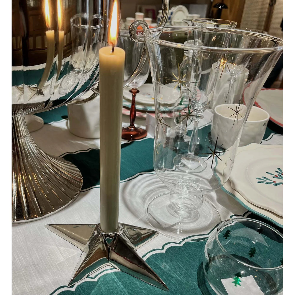 Last Christmas Forest svijećnjak klasičnog je izgleda s dubokim zelenim rubom koji unosi suptilnu blagdansku eleganciju u prostor. Jednostavno se kombinira s ostalim svijećnjacima i svijećama iz kolekcije za skladne dekorativne kombinacije. Materijal: borosilikatno staklo. Dimenzije: 8,5 x 13 x 11 cm. Izrada: ručno...
