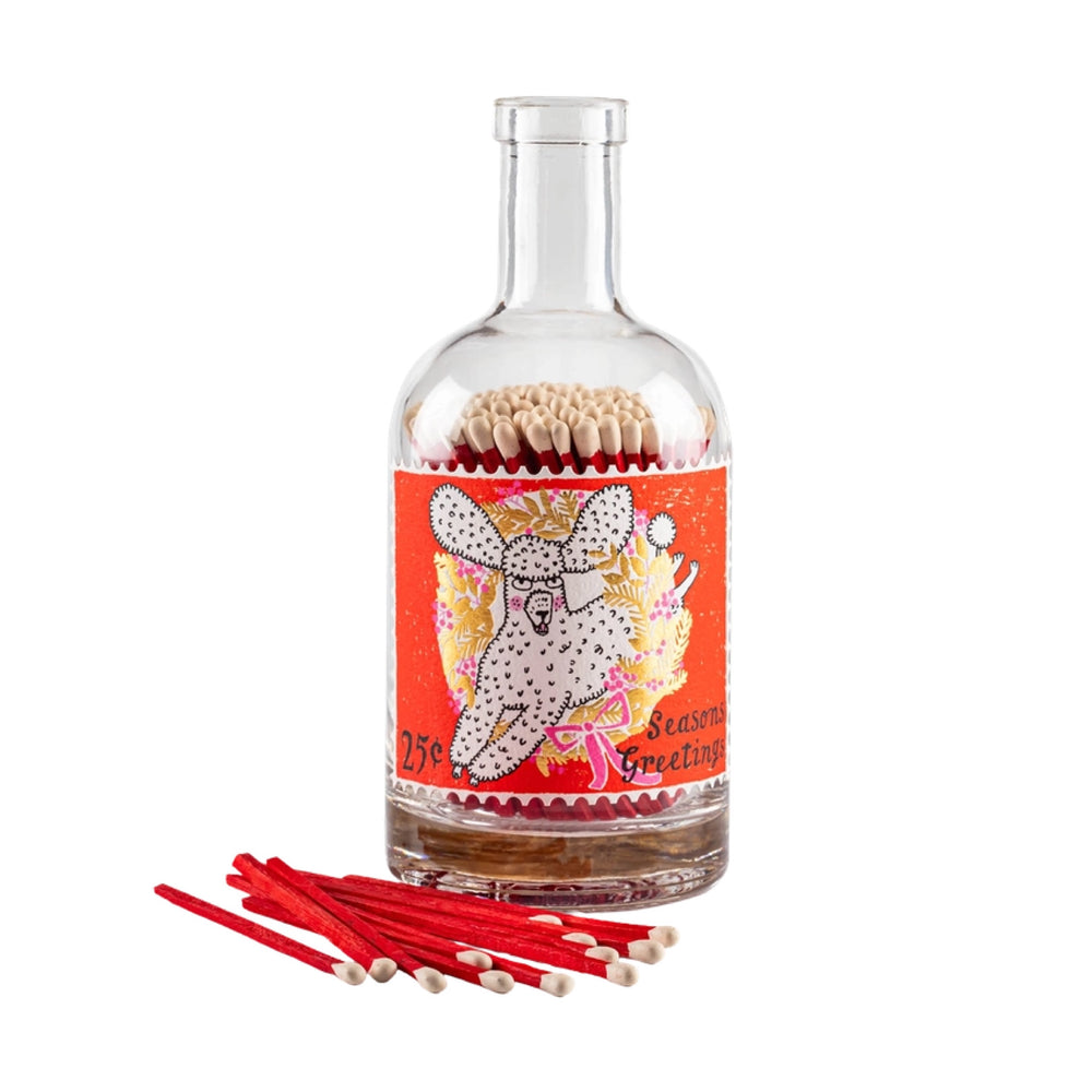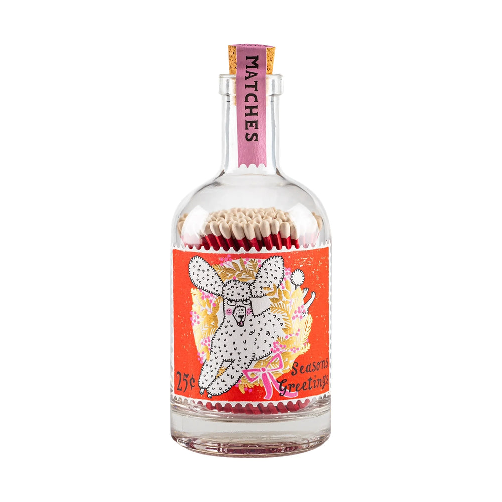 Dekorativne šibice u staklenoj bočici s plutanim čepom, osmišljene kao funkcionalan detalj za dom.