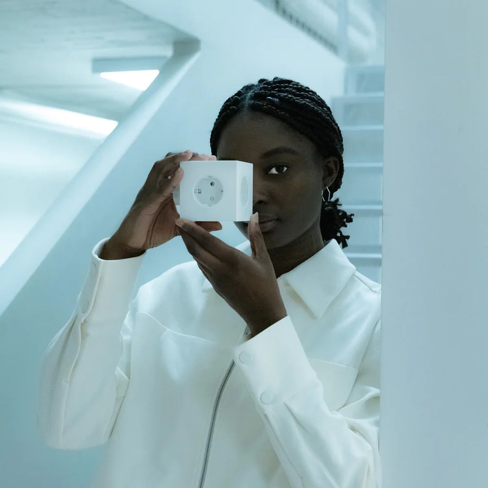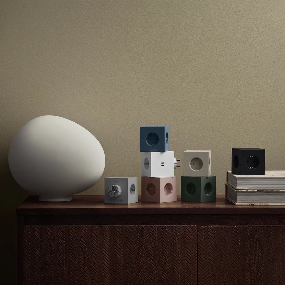 Designer wall extension adapter with 3 Schuko sockets and 2 USB-C ports (up to 30W in total) - an elegant and functional solution for home, office or public space.