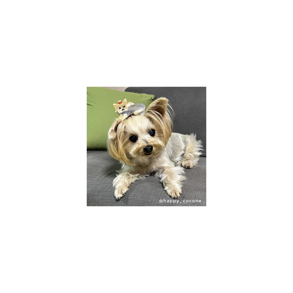 A very gentle dog that often ends up with a small ponytail on top of their head to give them a better view of the world. With beautiful gold details and gray-beige tones, this adorable kitsch hair clip will not go unnoticed!