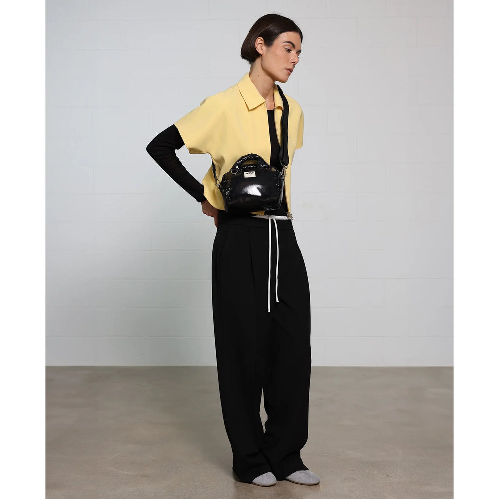 Details: main compartment with zipper, inner pocket, two padded handles, adjustable and detachable crossbody strap, leather logo, personalized aluminum puller, YKK zipper with recycled polyester side panels.