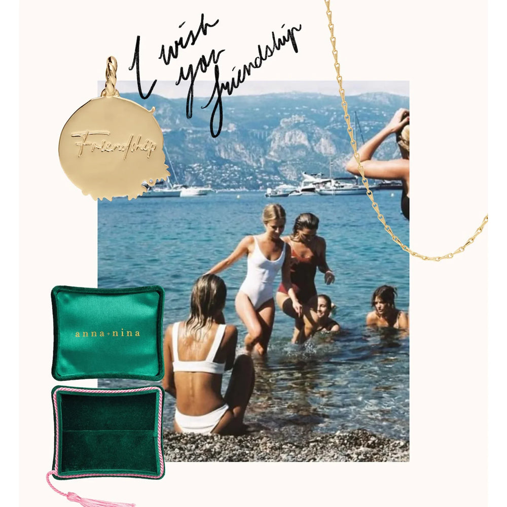 Medaljon Prijateljstvo privjesak je s ugraviranim motivom dva majmuna koji vise zajedno, simbolom prijateljstva i povezanosti. Na stražnjoj strani ugravirana je riječ “Friendship”, čime privjesak nosi jasno i trajno značenje.