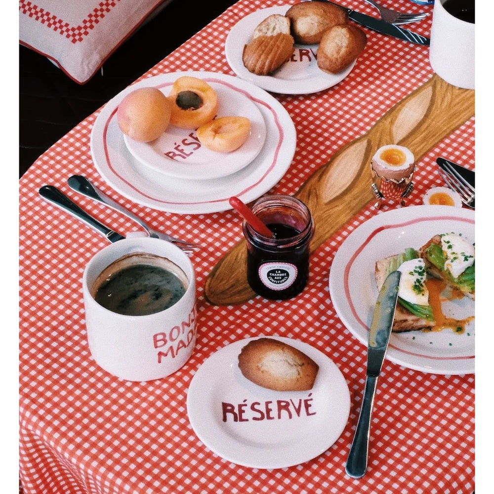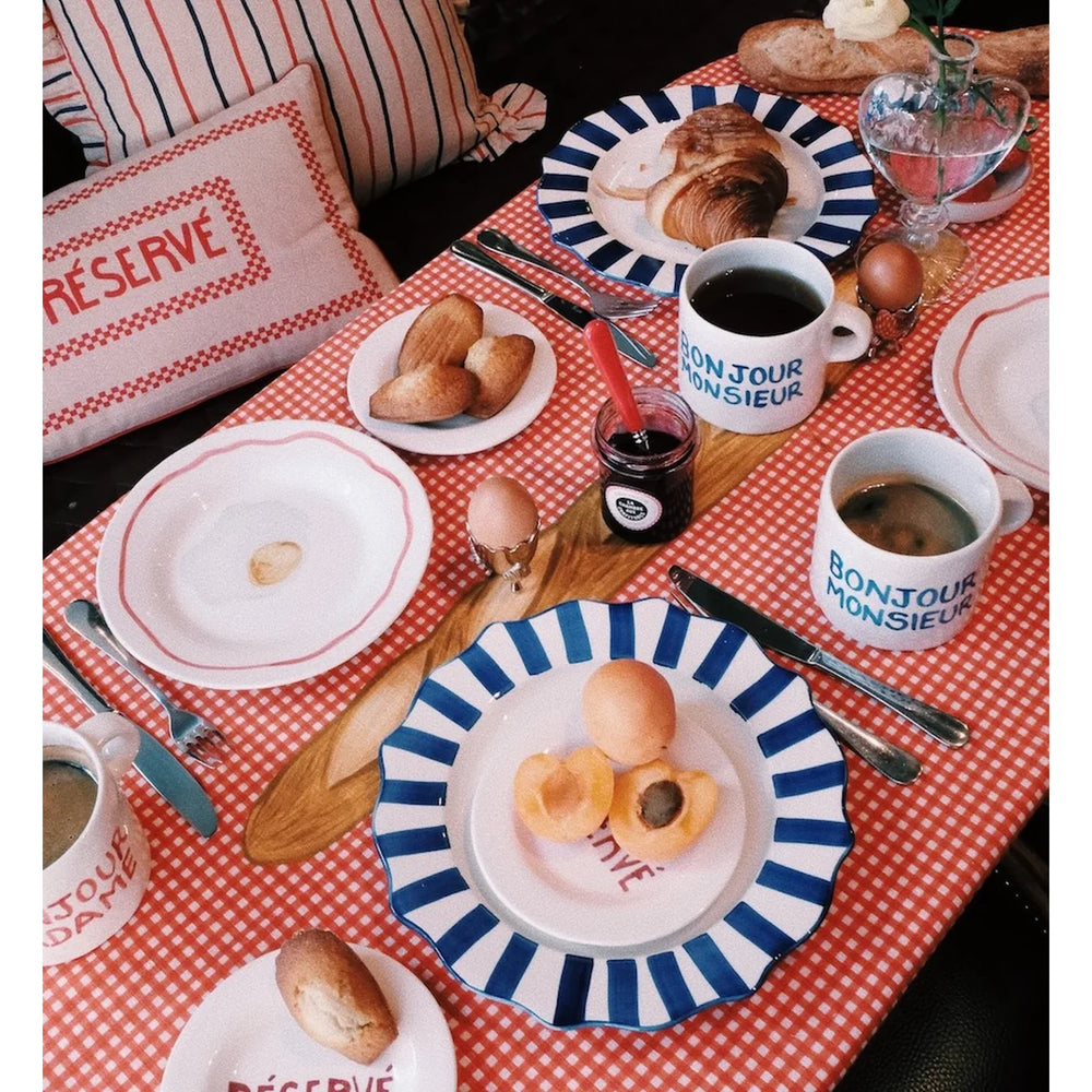 Baguette Tablecloth unosi suptilan francuski ugođaj na svaki stol. Karirani uzorak s motivom francuskog baguettea u središtu daje prepoznatljiv karakter, dok prirodni materijal osigurava ugodan i kvalitetan dojam pri svakodnevnoj upotrebi.
